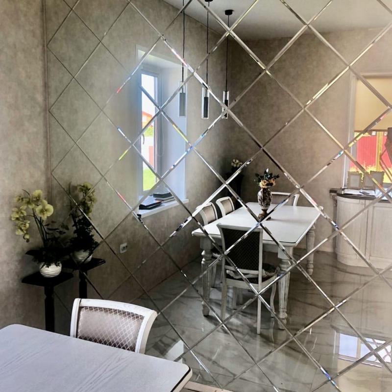 Использована серебристая зеркальная плитка "вытянутый ромб".